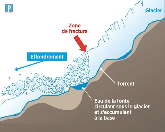 Schéma montrant l'effondrement d'un glacier - infographie Le Parisien