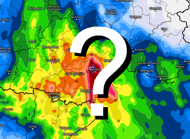 D'après les dernières modélisations, c'est du côté de l'Occitanie et notamment près du Languedoc-Roussillon que le risque de fortes précipitations et de cumuls notables sera le plus présent, bien que des incertitudes persistent encore sur la localisation exacte des plus forts cumuls. D'après les dernières modélisations, il est possible que certains secteurs reçoivent plus de 80-100mm en environ 24h, ce qui reste significatif.
