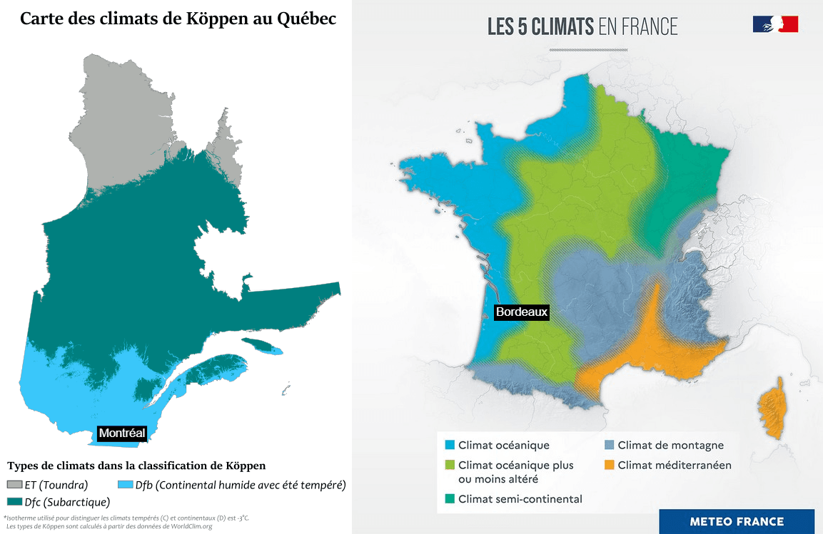 Les différents climats du Québec et de France – La géographie du Québec et Météo-Villes