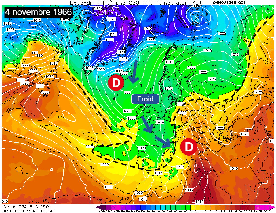 Situation du 4 novembre 1966 sur l'Europe - Wetterzentrale
