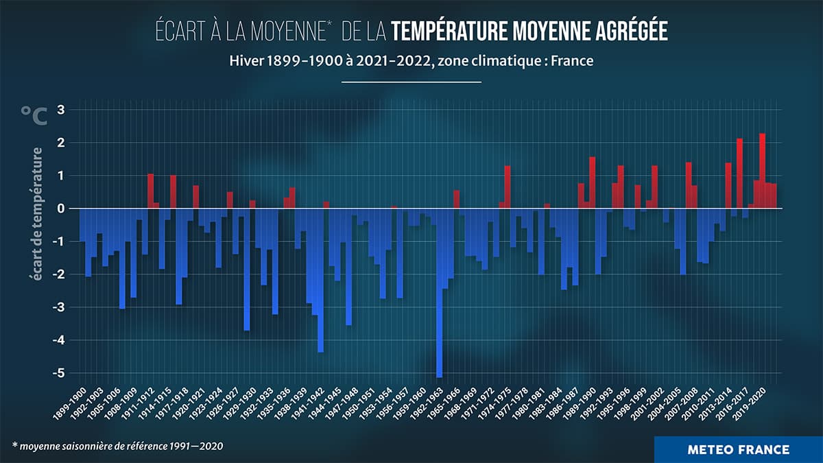 Anomalies thermiques en hiver en France entre 1899 et 2022 – Météo-France