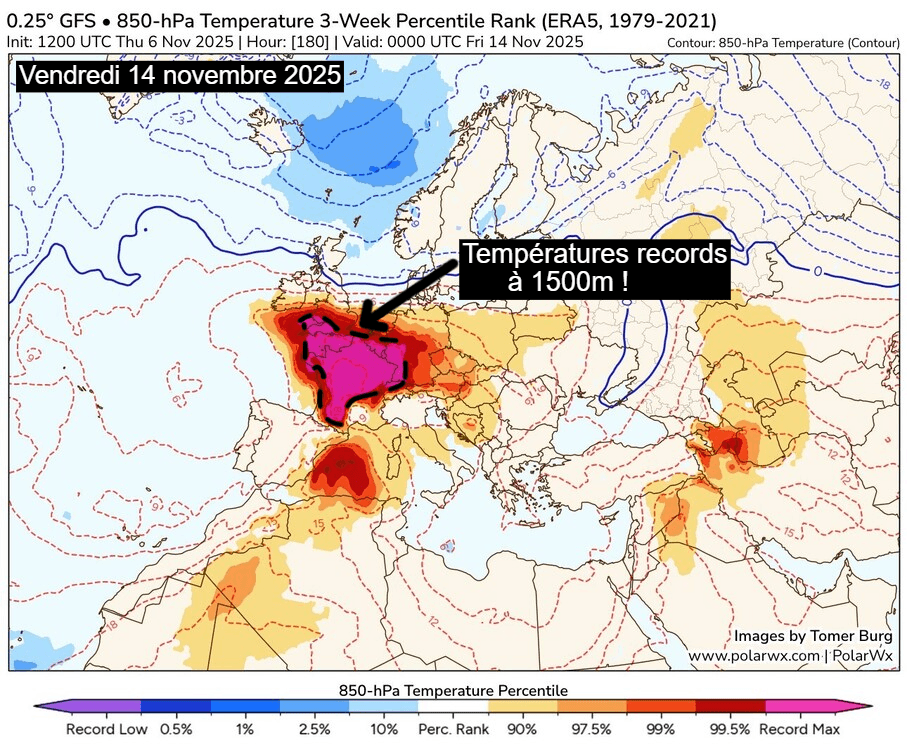 Vers une masse d'air record à 1500m sur la France la semaine prochaine – PolarWX.com